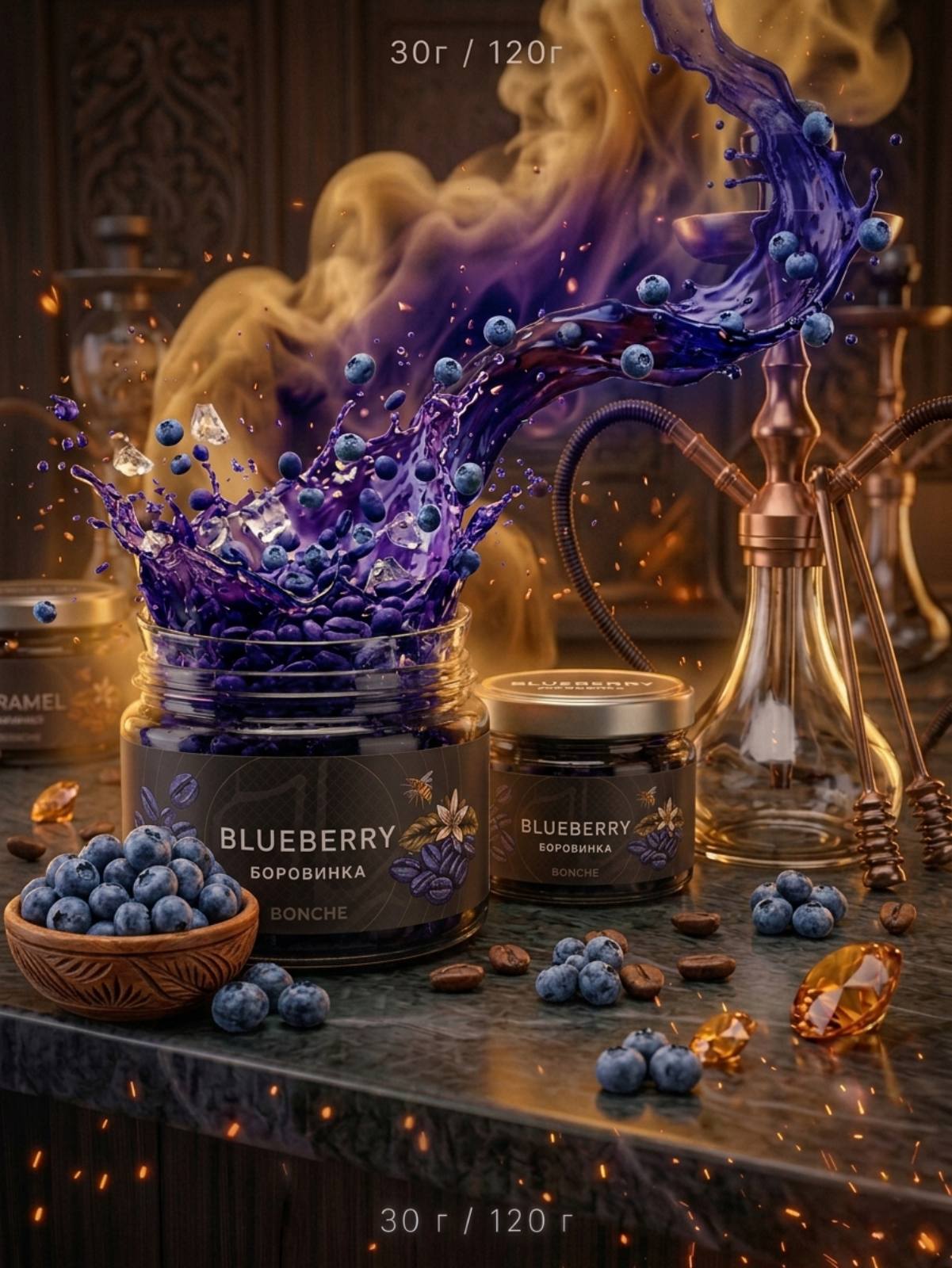 Bonche – Blueberry -30гр. Това е аромат за ценители на горските плодове. Той е балансиран, леко кисел и много плътен.