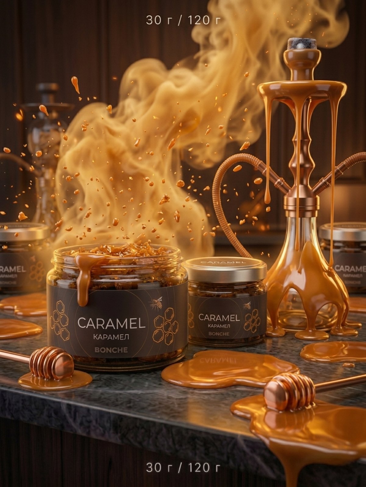 Bonche – Caramel – 30гр. е премиум тютюн за наргиле, създаден за ценители на дълбоки и ароматни вкусове. Комбинацията между висококачествена cigar leaf основа и вкус на карамел създава плътно, зряло и запомнящо се изживяване.