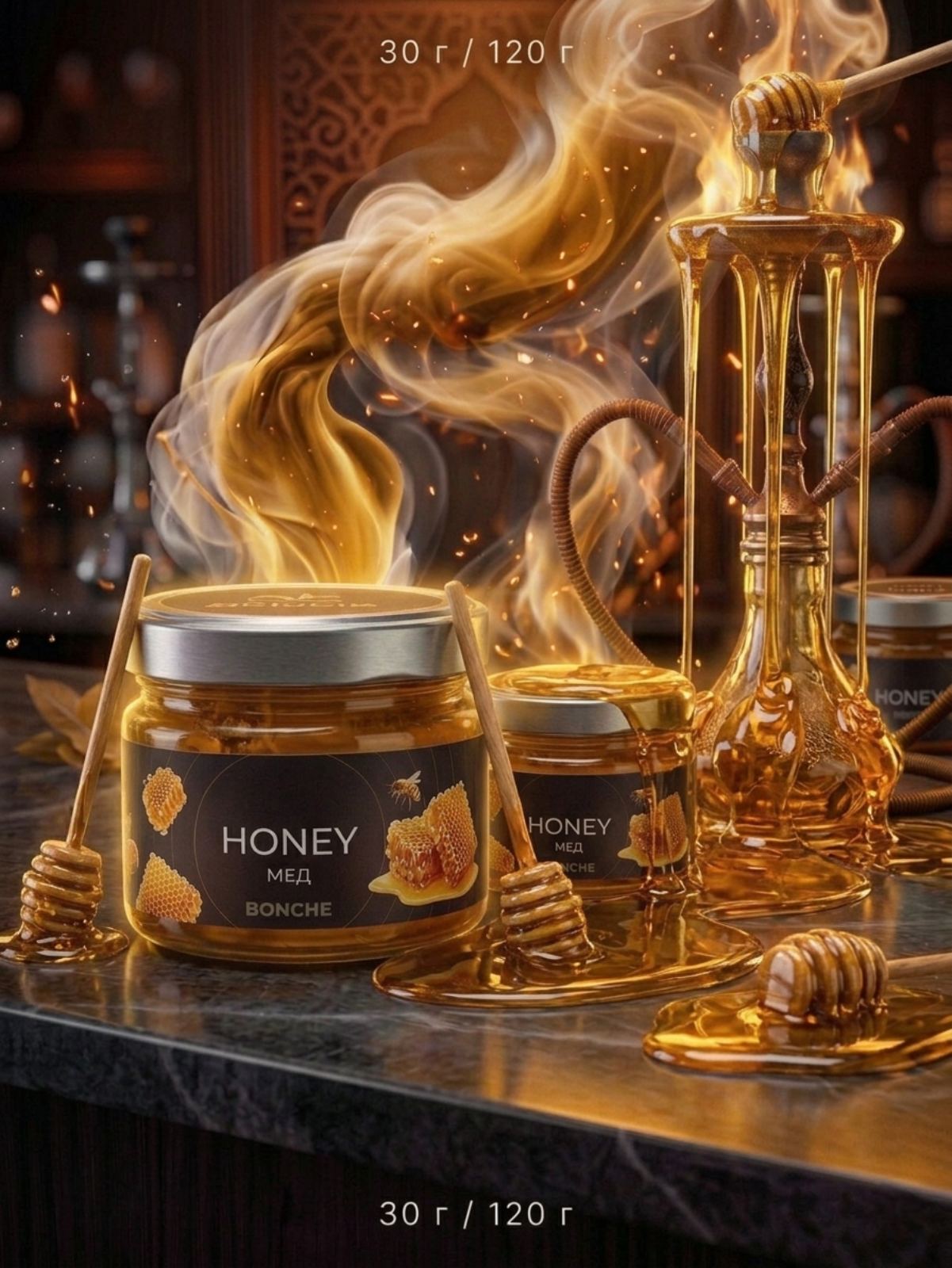 Bonche – Honey – 30гр. е премиум тютюн за наргиле, създаден за ценители на дълбоки и ароматни вкусове. Комбинацията между висококачествена cigar leaf основа и богат аромат на мед създава плътно, зряло и запомнящо се изживяване.