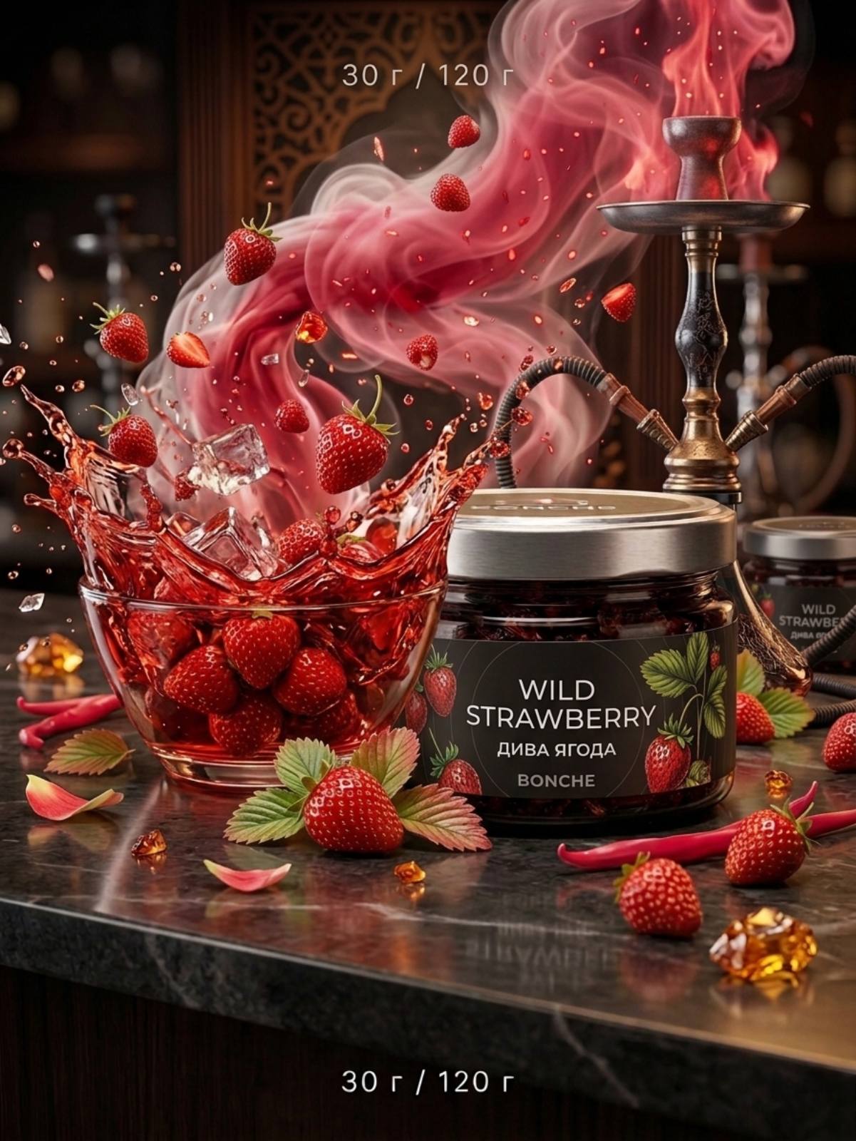 Bonche – Strawberry – 30гр. Този аромат е далеч от изкуствените, „гумени“ или прекалено сладки бонбонени вкусове, които често се срещат при други марки.Комбинира се отлично с десертни вкусове (като Bonche Cheesecake) или с алкохолни нотки (като Bonche Rum).